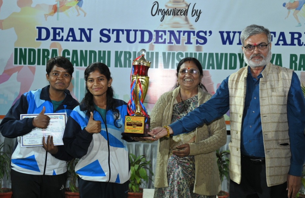 कार्यक्रम की अध्यक्षता अधिष्ठाता छात्र कल्याण डॉ. संजय शर्मा ने की। इस विश्वविद्यालयीन खेल-कूद प्रतियोगिता में इंदिरा गांधी कृषि विश्वविद्यालय के पूर्व, पश्चिम, उत्तर एवं दक्षिण जोन के अंतर्गत आने वाले समस्त महाविद्यालयों के 160 प्रतिभागी शामिल हुए। विश्वविद्यालयीन खेल कुम्भ में ईस्ट जोन 174 अंक प्राप्त कर ओवर ऑल चैम्पियन रहा, वहीं 91 अंक के साथ साऊथ जोन ओवर ऑल रनर अप रहा। सर्वश्रेष्ठ बालिका एथलीट का खिताब ईस्ट जोन की कुमारी संध्या नेताम तथा सर्वश्रेष्ठ बालक एथलीट का खिताब ईस्ट जोन के ही श्री कुनाल रावटे को प्रदान किया गया।