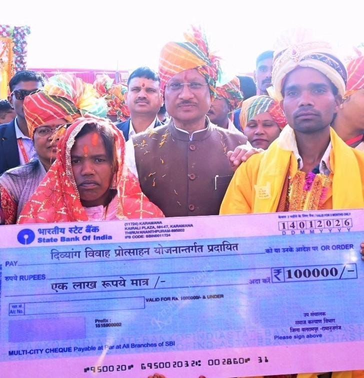 मुख्यमंत्री श्री विष्णु देव साय ने मुख्यमंत्री कन्या विवाह योजना के अंतर्गत विवाह बंधन में बंधे 200 जोड़ों को उनके नवदाम्पत्य जीवन के लिए हार्दिक शुभकामनाएँ और मंगलकामनाएँ प्रदान कीं, तथा उनके जीवन में प्रेम, विश्वास और समृद्धि से भरे उज्ज्वल भविष्य की कामना की।