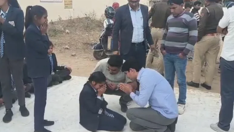 झुंझुनूं जिले की सरकारी स्कूल में धरने पर बैठे बच्चों के सामने शिक्षक ने हाथ जोड़ लिए. भूगोल के व्याख्याता अनिल कुमार के ट्रांसफर के विरोध में बच्चे 6 दिन से धरने पर थे. इसकी सूचना मिलते ही व्याख्याता मौके पर गए और धरना खत्म करने की अपील की. मामला सूरजगढ़ उपखंड में अगवाना खुर्द पंचायत की स्कूल का है. घटना का वीडियो भी सामने आया, जिसमें शिक्षक भावुक हो गए और छात्रा के सामने घुटनों के बल बैठ गए. उन्होंने यहां तक कहा कि बच्चों धरना खत्म करो, ये मेरे लिए गुरु दक्षिणा होगी.