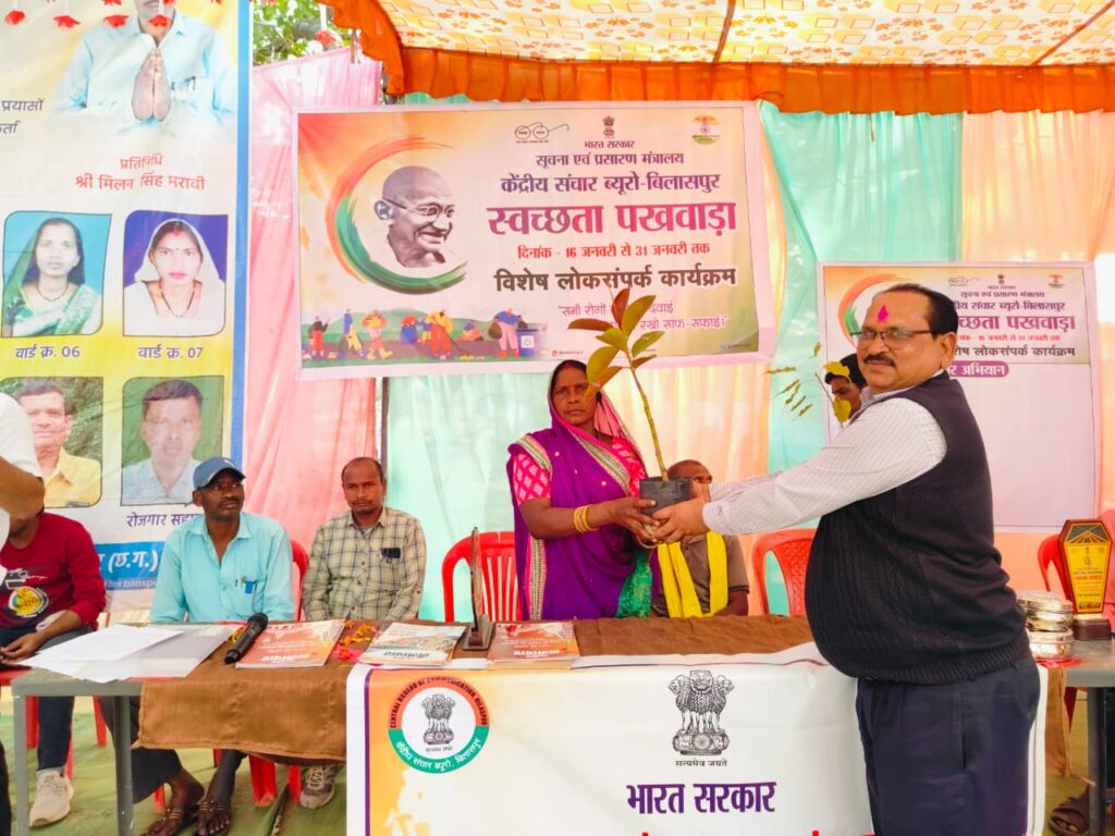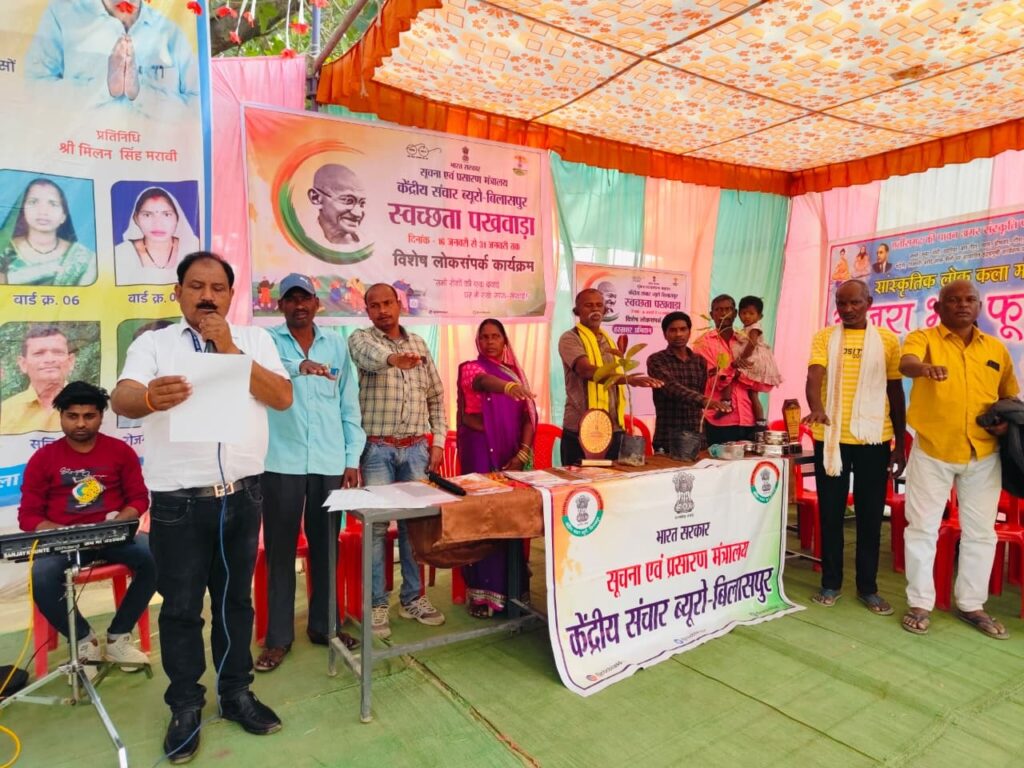 बिलासपुर- भारत सरकार के सूचना एवं प्रसारण मंत्रालय के अधीन केंद्रीय संचार ब्यूरो, बिलासपुर द्वारा स्वच्छता पखवाड़ा के अंतर्गत बिल्हा विकास खण्ड के आदिवासी आदर्श ग्राम मंजूरपहरी, जिला बिलासपुर में एक दिवसीय समेकित लोकसंपर्क कार्यक्रम का सफल आयोजन किया गया। कार्यक्रम का उद्देश्य स्वच्छता के प्रति जन-जागरूकता बढ़ाना तथा सामुदायिक सहभागिता को सुदृढ़ करना रहा।