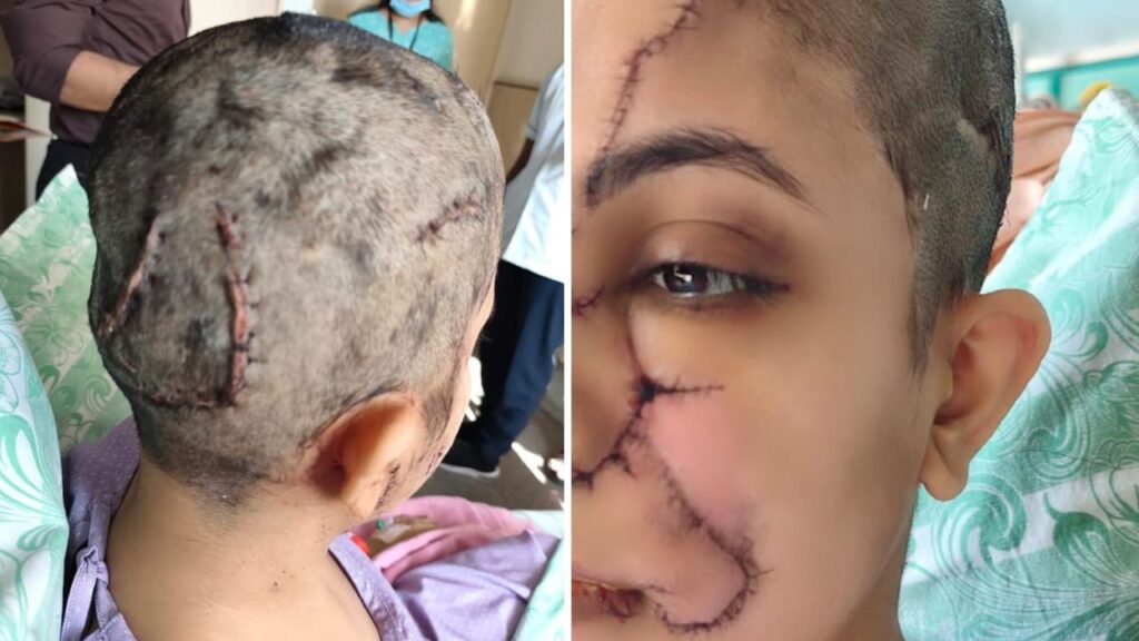 महिला के चेहरे पर आए 100 के करीब टांके