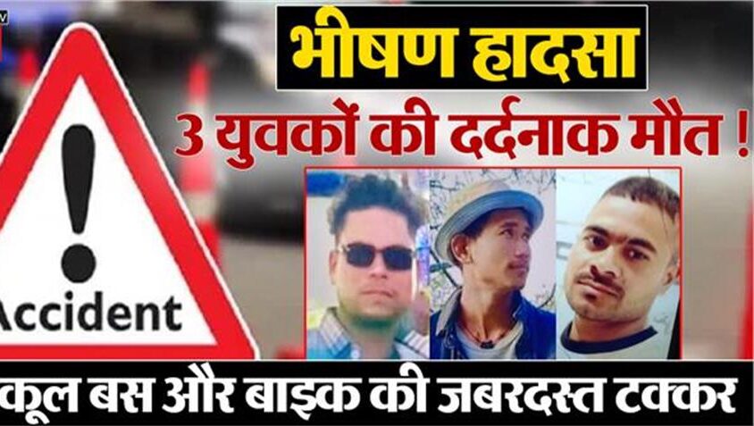 ऊधम सिंह नगरः जनपद ऊधम सिंह नगर के खटीमा में भीषण हादसा हुआ है। जहां एक निजी स्कूल बस और बाइक की जोरदार टक्कर हुई। घटना में बाइक सवार तीन युवकों की मौत की सूचना मिली है। जबकि आरोपी चालक मौके पर फरार हो गया। इस घटना के बाद मृतकों के परिजनों में कोहराम मच गया है।
