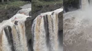 वीडियो में एक शख्स खतरनाक झरने में बोटिंग करता नजर आ रहा है। झरने में पानी का तेज बहाव, ऊंचाई से गिरती धारा और नीचे बने भंवर ने मिलकर ऐसा नजारा बना दिया कि देखने वालों के रोंगटे खड़े हो जाएंगे।