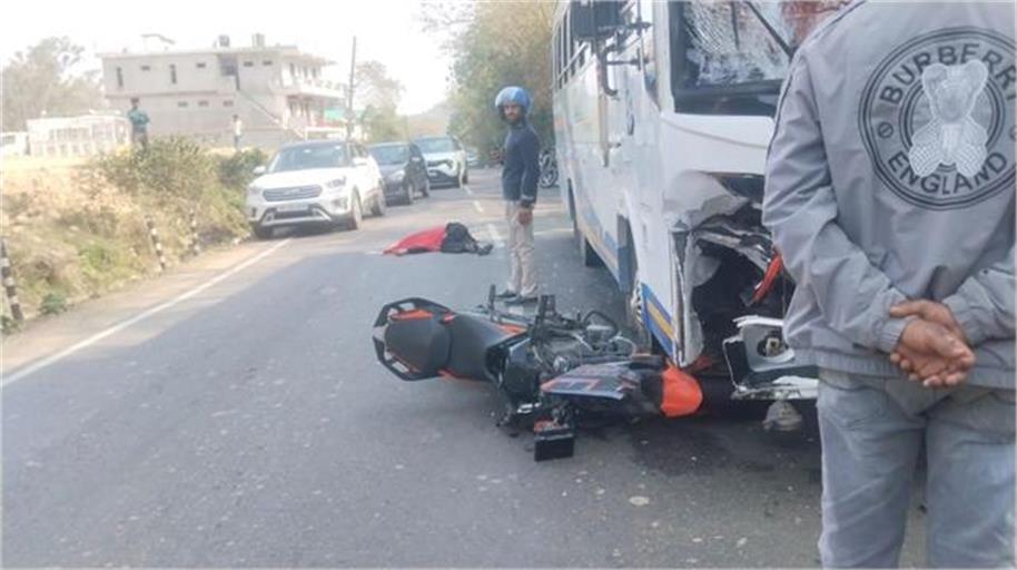 देहरा। एनएच-503 पर देहरा के 132 केवी सब स्टेशन के समीप एक भीषण सड़क हादसे में बाइक सवार युवक की मौके पर ही मौत हो गई, जबकि बाइक पर पीछे बैठी युवती गंभीर रूप से घायल हो गई। हादसा देहरा हनुमान चौक से धर्मशाला-कांगड़ा मार्ग की ओर जाते समय हुआ। जानकारी के अनुसार श्रद्धालुओं से भरी एक नई टूरिस्ट बस सोलन से ज्वालामुखी मंदिर दर्शन के बाद माँ बगलामुखी मंदिर जा रही थी। इसी दौरान धर्मशाला-कांगड़ा की ओर से आ रही तेज रफ्तार बाइक बस से जा टकराई।