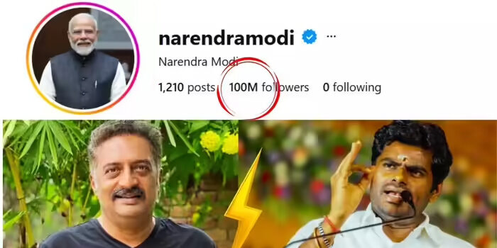 प्रकाश राज ने के. अन्नामलाई के पीएम मोदी के तारीफ वाले ट्वीट पर कमेंट करते हुए लिखा था कि 100 मिलियन फॉलोअर का क्या यूज है। इसके जवाब में अन्नामलाई ने पोस्ट को रीशेयर करते हुए तंज कसे। उन्होंने लिखा कि एसिडिटी के लिए जेलुसिल और जलन के लिए बर्नोल, दोनों ही अभी काम आ सकते हैं। प्रधानमंत्री नरेंद्र मोदी 12 नवंबर, 2014 को इंस्टग्राम पर आए थे। तब से वह इंस्टाग्राम पर भी अपने अपडेट साझा कर रहे हैं। इंस्टाग्राम पर 100 मिलियन फॉलोअर्स का ऐतिहासिक आंकड़ा पार करने वाले दुनिया के पहले राष्ट्राध्यक्ष बन गए हैं।