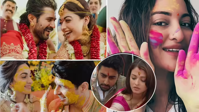 रश्मिका मंदाना और विजय देवरकोंडा ने 26 फरवरी को शादी के बंधन में बंध गए हैं। दोनों ने उदयपुर में अपने बेहद करीबियों के बीच शादी की रस्में निभाईं। अब 4 मार्च को हैदराबाद में रिसेप्शन पार्टी रखी गई है और इसी दिन होली भी है। शादी के बाद रश्मिका मंदाना और विजय की ये पहली होली होगी, जो शादी के बाद ये साथ मिलकर सेलिब्रेट करेंगे। आज यहां हम लेकर आए हैं कुछ शानदार फिल्मी कपल की पहली होली की खूबसूरत झलकियां। आइए देखतें हैं किन सितारों ने शादी के बाद कैसे मनाई थी पिछली होली।