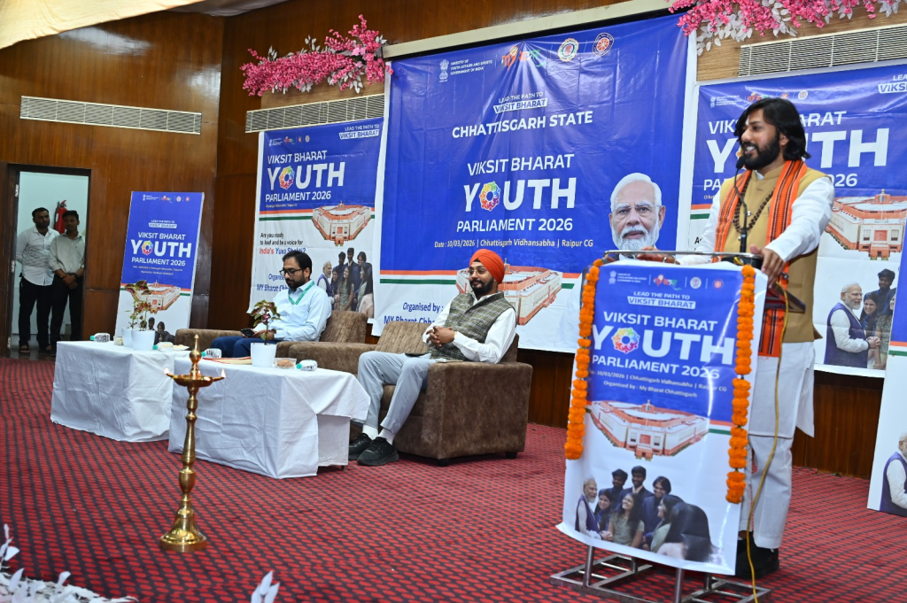 रायपुर: माय भारत द्वारा युवा कार्यक्रम एवं खेल मंत्रालय, भारत सरकार के तत्वावधान में ऐतिहासिक पुरानी छत्तीसगढ़ विधानसभा में राज्य स्तरीय “विकसित भारत युवा संसद 2026” का आयोजन किया गया। कार्यक्रम का उद्देश्य युवाओं को लोकतांत्रिक प्रक्रिया से जोड़ना, राष्ट्रीय नीतियों पर शोध-आधारित विचार-विमर्श को प्रोत्साहित करना तथा विकसित भारत @2047 के राष्ट्रीय संकल्प में युवाओं की सक्रिय भागीदारी सुनिश्चित करना है।