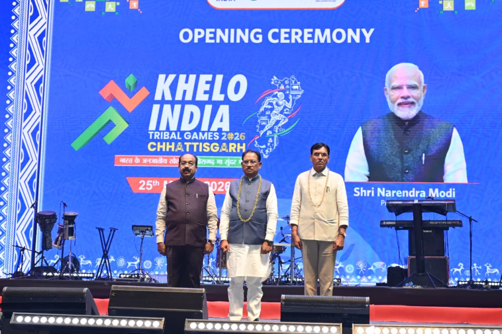 रायपुर- छत्तीसगढ़ की धरती आज एक ऐतिहासिक क्षण की साक्षी बनी, जब राजधानी रायपुर के साइंस कॉलेज ग्राउंड में देश के प्रथम ‘खेलो इंडिया ट्राइबल गेम्स 2026’ का भव्य शुभारंभ हुआ। मुख्यमंत्री श्री विष्णु देव साय ने इस राष्ट्रीय आयोजन की आधिकारिक घोषणा करते हुए स्पष्ट किया कि राज्य सरकार खेल प्रतिभाओं को आगे बढ़ाने और खेल अधोसंरचना को मजबूत करने के लिए पूर्णतः प्रतिबद्ध है। इस गरिमामयी अवसर पर केंद्रीय युवा मामले एवं खेल मंत्री डॉ. मनसुख मांडविया मुख्य अतिथि के रूप में उपस्थित रहे।