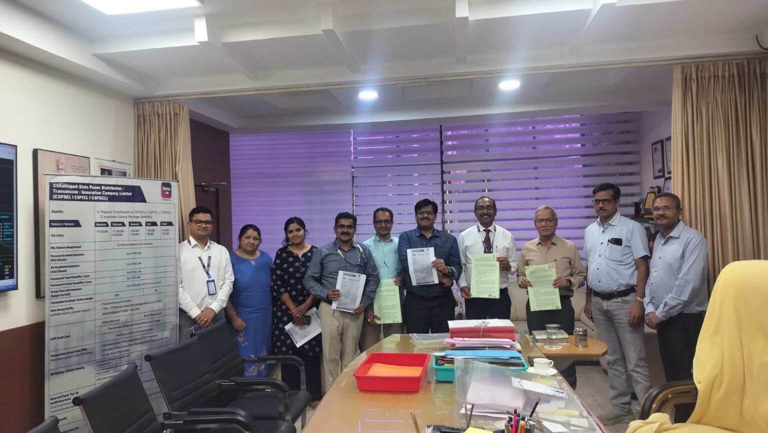 साथ ही, विभिन्न श्रेणियों के अनुसार कर्मचारियों को अमेजन प्राइम सदस्यता, यात्रा एवं मनोरंजन से जुड़े ऑफर, एयरपोर्ट लाउंज एक्सेस तथा चयनित श्रेणियों में जिम, स्पा एवं अन्य लाइफस्टाइल सुविधाएं भी उपलब्ध होंगी। कंपनी प्रबंधन ने सभी कर्मचारियों से अपील की है कि वे इस योजना का अधिकतम लाभ उठाने के लिए संबंधित एसबीआई शाखा से संपर्क करें और अपना खाता इस योजना में बदलने के लिए आवश्यक औपचारिकताएं पूरी करें। इस अवसर पर छत्तीसगढ़ स्टेट पावर जनरेशन कंपनी के कार्यपालक निदेशक (वित्त) संदीप मोदी, ट्रांसमिशन कंपनी के एजीएम श्री मुकेश कश्यप, एसबीआई के डीजीएम श्री राकेश कुमार सिन्हा एवं असिस्टेंट जीएम श्री राम विनोद सिंह उपस्थित थे।