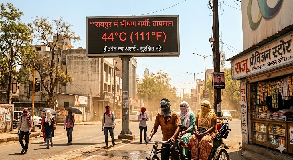 रायपुर: छत्तीसगढ़ की राजधानी रायपुर सहित पूरा प्रदेश इस समय भीषण गर्मी की चपेट में है, जहाँ पारा लगातार चढ़ते हुए 43 से 44 डिग्री सेल्सियस के पार पहुँच गया है। चिलचिलाती धूप और गर्म हवाओं (लू) के थपेड़ों ने जनजीवन को अस्त-व्यस्त कर दिया है, जिसके चलते दोपहर के समय सड़कों पर सन्नाटा पसरने लगा है। मौसम विभाग के अनुसार, शुष्क हवाओं और पश्चिमी विक्षोभ की कमी के कारण आने वाले दिनों में तापमान में और भी बढ़ोतरी होने की संभावना है, जिससे राहत मिलने के आसार फिलहाल कम नजर आ रहे हैं।