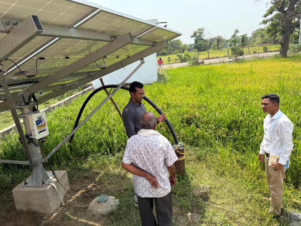 तत्पश्चात् उनके द्वारा जिला कांकेर के ग्राम आमाकडा में सौर सुजला योजनांतर्गत स्थापित सौर संयंत्र के हितग्राही शंकर लाल डुगा के यहॉ स्थापित 03 एच.पी. सबमर्सिबल पम्प का निरीक्षण किया गया, हितग्राही द्वारा अवगत कराया गया कि उनके यहॉ स्थापित संयंत्र में किसी प्रकार की समस्या उनके संयंत्र में नही आयी है, एवं संयंत्र स्थापना के बाद से अब तक यह सुचारू रूप से कार्यशील है।