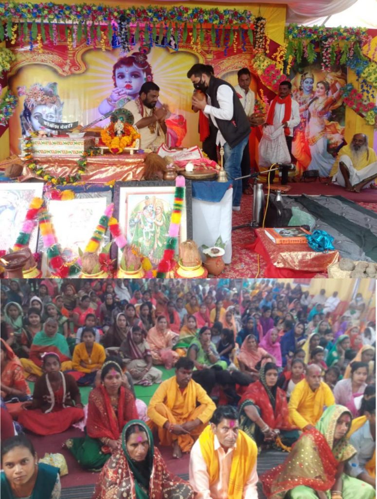 पांडुका। छुरा विकास खंड के ग्राम पंचायत पांडुका में विराट भक्ति संगीतमय श्रीमद भागवत महा महापुराण ज्ञान यज्ञ सप्ताह का आयोजन किया गया है।जहां आमजन इस आयोजन का लाभ उठा रहे हैं। इसी कार्यक्रम के तहत उपाध्यक्ष जनपद पंचायत छुरा श्री गौरव मिश्रा ने अपनी सहभागिता निभाते हुए 2जनवरी को अपने तरफ से प्रसादी एवं भंडारे का आयोजन किया। जिसमें सभी उपस्थित श्रद्धालुओं ने प्रसाद ग्रहण किया। इस अवसर श्री मिश्रा ने कहा कि श्रीमद् भागवत साक्षात भगवान का स्वरूप है इसीलिए श्रद्धापूर्वक इसकी पूजा-अर्चना की जाती है। इसके पठन एवं श्रवण से भोग और मोक्ष दोनों सुलभ हो जाते हैं। मन की शुद्धि के लिए इससे बड़ा कोई साधन नहीं है। सिंह की गर्जना सुनकर जैसे भेडि़ए भाग जाते हैं, वैसे ही भागवत के पाठ से कलियुग के समस्त दोष नष्ट हो जाते हैं। इसके श्रवण मात्र से हरि हृदय में आ विराजते हैं। भगवान कृपा से ओमीकॉर्न जैसे कोरोना वायरस का नाश हो और आमजनता स्वस्थ और निरोगी रहे। इस कार्यक्रम में पांडुका ग्राम के आसपास के सैकड़ों श्रद्धालु उपस्थित थे।