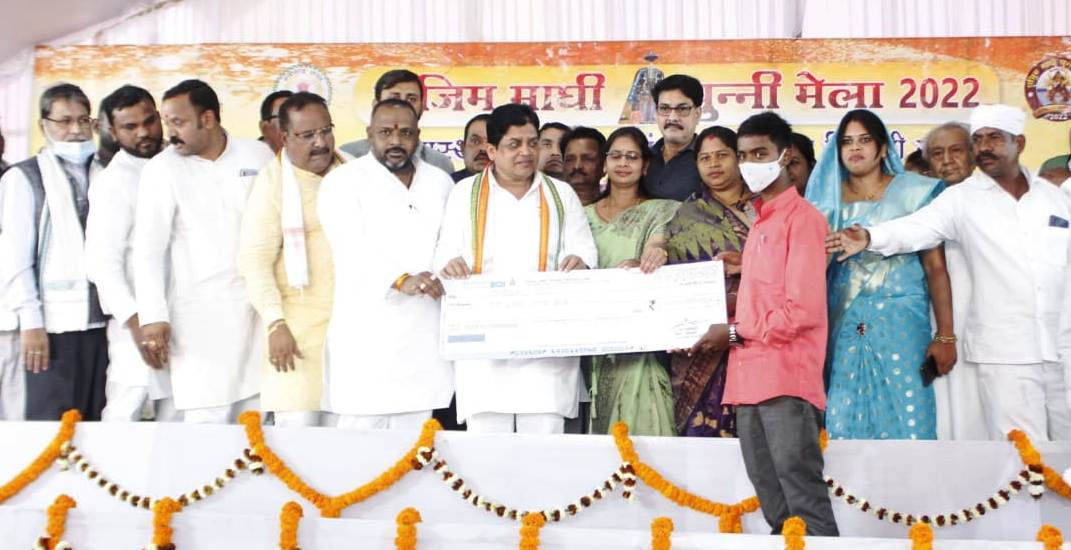 राजिम माघी पुन्नी मेला में श्रम एवं नगरीय प्रशासन मंत्री डॉ. शिव डहरिया ने 1093 हितग्राहियों को श्रम विभाग की विभिन्न योजनाओं में 61 लाख रूपए का ऑनलाइन चेक वितरण किया। उन्होंने इस मौके पर सम्बोधित करते हुए कहा कि राज्य में गरीब मजदूर और श्रमिकों के लिए अनेक योजनाएं संचालित है, जो मिशाल है। उन्होंने कहा कि राज्य सराकर गढ़बो नवा छत्तीसगढ़ के ध्येय मंत्र को लेकर कार्य कर रही है। श्रम विभाग में जन्म से लेकर मृत्य तक की योजनाएं संचालित है। श्रमिकों के हित के लिए राज्य सरकार प्रतिबद्ध है। डॉ. डहरिया ने कहा कि स्वच्छता के रैंकिग में लगातार तीसरे वर्ष राज्य ने प्रथम स्थान हासिल किया है। उन्होंने सरकार की योजनाओं स्वामी आत्मानंद स्कूल, कर्ज माफी, बिजली बिल हॉफ, सिंचाई टैक्स मॉफ और अन्य योजनाओं के बारे में विस्तार से जानकारी दी।