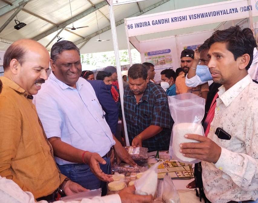 इंदिरा गांधी कृषि विश्वविद्यालय परिसर में 11 से 14 मार्च तक आयोजित अन्तर्राष्ट्रीय कृषक प्रदर्शनी एवं किसान मेले में शासकीय, सार्वजनिक एवं निजी क्षेत्र की 132 संस्थाओं द्वारा किसानोपयोगी नवीनतम कृषि तकनीक एवं उत्पादों का प्रदर्शन तथा विक्रय किया गया। इस प्रदर्शनी में इंदिरा गांधी कृषि विश्वविद्यालय द्वारा विकसित नवीनतम कृषि प्रौद्योगिकी, अनुसंधान तकनीकों एवं उत्पादों का प्रदर्शन भी किया गया। इसके साथ ही राज्य शासन के कृषि एवं उद्यानिकी विभागों द्वारा किसानों के लिए संचालित योजनाओं यथा गौधन विकास योजना, नरवा, गरूआ, घुरवा, बाड़ी जैसी महत्वाकांक्षी योजनाओं को भी प्रदर्शित किया गया। प्रदर्शनी के तहत प्रत्येक दिवस इंदिरा गांधी कृषि विश्वविद्यालय के कृषि वैज्ञानिकों द्वारा किसान पाठशाला में किसानों को कृषि जुड़े विभिन्न विषयों पर तकनीकी व्याख्यान दिये गए। लगभग 15 हजार वर्गमीटर क्षेत्र में आयोजित इस कृषि प्रदर्शनी में नवीनतम कृषि यंत्रों एवं उपकराणों, उन्नत सिंचाई प्रणाली, उन्नत बीज एवं कीटनाशक, सोलर पंप, बागवानी उपकरण, पशुपालन एवं डेयरी से संबंधित यंत्र एवं उपकरण जैव उर्वरक एवं रसायन, जैविक एवं संरक्षित खेती के उपकरणों के साथ ही कृषि विभिन्न क्षेत्रों से संबंधित प्रौद्योगिकी, मशीनरी एवं उत्पादों को प्रदर्शित किया गया। प्रदर्शनी के दौरान किसानों को कृषि की नवीनतम प्रौद्योगिकी से रूबरू होने के साथ ही विभिन्न उत्पादों के क्रय तथा उनके द्वारा उत्पादित सामग्री के विक्रय का अवसर प्राप्त हुआ। अन्तर्राष्ट्रीय किसान मेले एवं प्रदर्शनी को राज्य के किसानों का अच्छा प्रतिसाद मिला। चारो दिन मेले में किसानों की भीड़ उमड़ी रही।