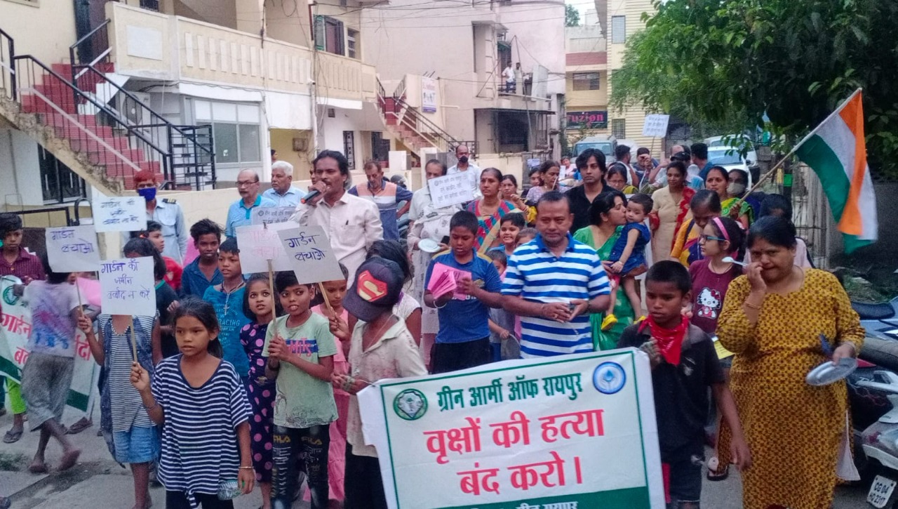 रायपुर। राजधानी रायपुर के प्रियदर्शनी नगर एवं गुरू घासीदास नगर के मध्य स्थित न्यू राजेन्द्र नगर का यह सुन्दर गार्डन जो कि बच्चों, बुजुर्गों, महिलाओं के लिये अति आवश्यक है, उसके स्थान पर एक सर्व समाज सार्वजनिक भवन बनाया जा रहा है आस-पास के समस्त स्थानिय निवासियों एवं पर्यावरण संरक्षण हेतु कार्यरत संस्था ग्रीन आर्मी ऑफ रायपुर द्वारा इस गार्डन के भूमि पर निर्माण का घनघोर विरोध कर रहा है। इस संबंध में ग्रीन आर्मी संस्था एवं स्थानीय निवासियों द्वारा इसके विरोघ में एक जनजागरण यात्रा थाली बजाकर निकाली। इस रैली में बच्चे, बुजुर्ग एवं महिलायें तथा युवा सभी शामिल हुए। सारे लोंगों ने एक स्वर में गार्डन को बचाने की अपील की एवं इस भवन निर्माण का खुलकर विरोध किया। रायपुर शहर में विगत 5 वर्षो से पर्यावरण संरक्षण हेतु निरंतर कार्यरत संस्था के सदस्यों ने इस पूरे प्रकरण में दोनो सोसायटी के सदस्यों, स्थानिय नागरीकों से मुलाकात की सभी ने इस निर्माण पर अपना विरोध जताया एवं गार्डन बचान की अपील की। ग्रीन आर्मी की टीम ने स्थानिय पार्षद, विधायक, जोन कमिश्नर, एवं नगरिय प्रशासन मंत्री शिव डहरिया से भी मिलकर इस संबंध में ज्ञापन सौपा एवं उनसे गार्डन बचाने हेतु अपील की। ग्रीन आर्मी के अध्यक्ष एन.आर. नायडू ने बताया वर्तमान समय मे हमें मेट्रो सिटी के अंदर के एक-एक गार्डन तालाब एवं खुली भूमि, मैदान, खेल मैदानों को बचाना होगा तभी पर्यावरण बचेगा। विकास तभी न्यायोचित होगा जब वह पर्यावरण का विनाश ना करें हमें पर्यावरण, का विनाश करके विकास नही चाहिये। जहॉ जहॉ पर्यावरण को बर्बाद किया जायेगा ग्रीन आर्मी की टीम उसका विरोध करेगी। स्थानिय निवासी तथा आस-पास के रहवासियों के लिये यह गार्डन बहुत ही आवश्यक है जिसके विरोध में बहुत अधिक संख्या में लोग शामिल हो रहे है गार्डन भूमि के गार्डन को उजाड़कर निर्माण किया जा रहा है जिसके विरोध में प्रियदर्शनी नगर हाउसिंग सोसायटी एवं गुरू घासीदास हाउसिंग सोसायटी तथा ग्रीनआर्मी ऑफ रायपुर से अध्यक्ष एन.आर. नायडू स्थानिय निवासी आ.के. पाण्डेय, भरत त्रिवेदी, डॉ गजेन्द्र सक्सेना, सोमेश्वर तिवारी, सरोज आयेनगर, मिता त्रिवेदी, झरना मजूमदार, शामिल हो रहे है।
