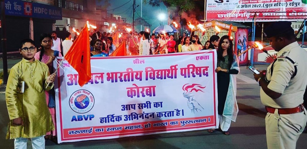 अखिल भारतीय विद्यार्थी परिषद कोरबा ने संविधान के रचयिता डॉक्टर साहेब भीमराव अंबेडकर जी के 131 वाँ जयंती पर सुभाष चौक निहारिका से घंटाघर तक चौक तक विशाल मशाल यात्रा निकाली एवं घंटाघर में स्थित अम्बेडकर जी के स्मृति पर दीप प्रज्वलित कर माल्यार्पित किया।