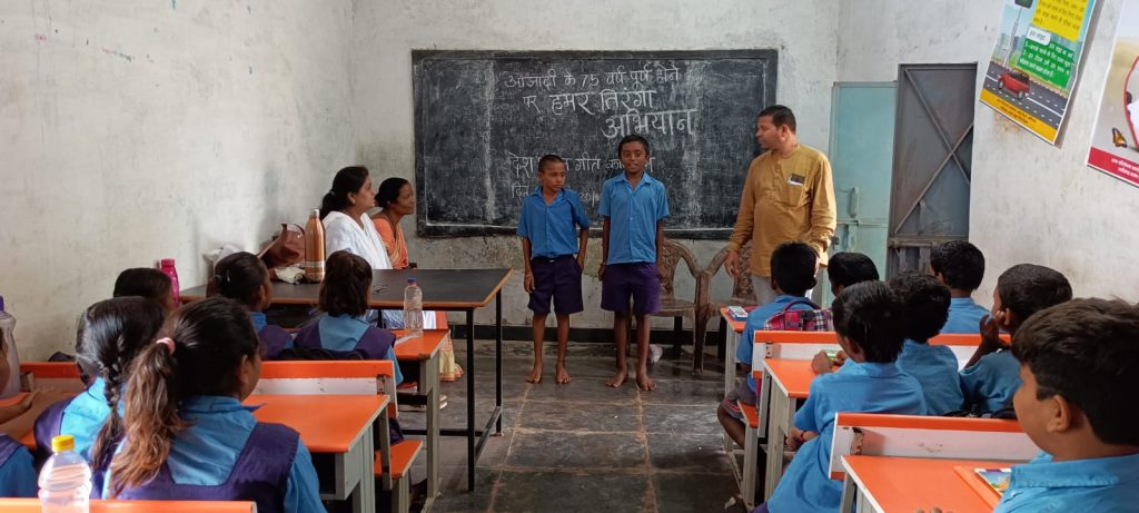 संकुल शैक्षिक समन्वयक ललित कुमार बिजौरा ने बच्चों द्वारा प्रस्तुत देशभक्ति गीत की सराहना करते हुए उन्हें प्रोत्साहित किया तथा सभी बच्चों को ऐसे कार्यक्रम में सहभागिता देने जोर दिया । छत्तीसगढ़ शासन द्वारा ” हमर तिरंगा कार्यक्रम ” अंतर्गत दिनांक 20 अगस्त से लेकर 30 अगस्त तक स्कूली छात्र-छात्राओं के लिए अलग अलग कार्यक्रम आयोजित किये गए हैं । आज देशभक्ति गीत के आयोजन में प्रमुख रूप से संस्था प्रमुख श्री के.पी.चौबे , श्री जयंत वर्मा , शिक्षक –शिक्षिकाएं — श्री के .पी .ठाकुर , श्री कोमल सिंह ठाकुर , श्रीमती लीना बघेल , श्रीमती सुजाता मिश्रा , श्रीमती अंजू वर्मा , श्रीमती एम.एस खलखो सहित स्थानीय जन प्रतिनिधि शाला प्रबंधन समिति के पदाधिकारी , सदस्य गण एवम पालक सहित छात्र–छात्राएं उपस्थित रहे ।