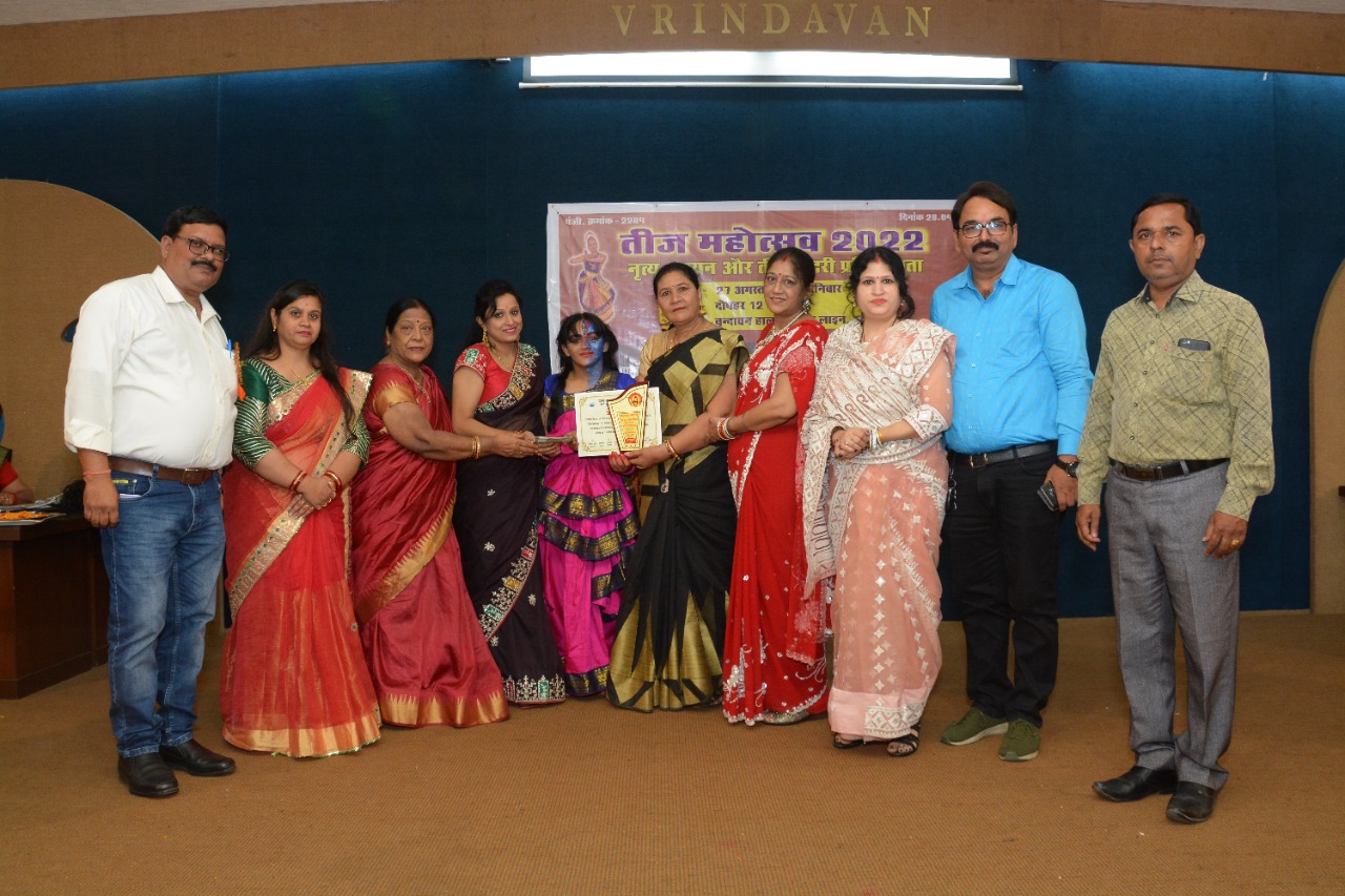 प्रदेश अध्यक्ष अरविन्द ओझा एवं महिला अध्यक्ष नमिता शर्मा ने बताया कि वर्ल्ड ब्राह्मण फेडरेशन छ.ग. एवं सर्व युवा ब्राह्मण परिषद छ.ग. द्वारा विगत वर्षों की भाँति प्रदेश की विप्र महिलाओं व युवतियों को पूर्णतः पारिवारिक, सामाजिक माहौल में मंच प्रदान करने तीज महौत्सव में नृत्य, गायन और तीज सुंदरी प्रतियोगिता का आयोजन शनिवार, 27 अगस्त, 2022 को दोपहर 12 बजे से वृन्दावन हाल, रायपुर में किया गया. कार्यक्रम की मुख्य अतिथि समाजसेवी श्रीमती संजना विकास उपाध्याय जी एवं विशिष्ट अतिथि शिवम एजुकेशन की श्रीमती नीलिमा मिश्रा जी थी. कार्यक्रम में विभिन्न ब्राम्हण समाज की महिलाओं ने मंच पर नृत्य व गायन में अपनी समूह व एकल प्रस्तुति देकर अपनी प्रतिभा का प्रदर्शन किया. इस प्रतियोगिता में नृत्य के निर्णायक श्रीमती दीपाली पाण्डेय जी, श्रीमती अर्चना भोयर जी एवं गायन के निर्णायक श्रीमती वेणु जोशी एवं रवि कुमार जी थे. स्वामी नारायण महिला मंडल के श्रीमती सुशीला जोशी द्वारा एक प्रजेंटेशन एवं संस्कृत प्रश्नावली प्रस्तुत की गयी. नृत्य में आनंदिता तिवारी, आशिमा भोयर की एवं गायन में श्रीमती प्रज्ञा त्रिवेदी एवं अनुष्का पाण्डेय की विशेष प्रस्तुति के लिए सम्मानित किया गया. तीज सुन्दरी प्रतियोगिता में श्रीमती उन्नति शुक्ला, लक्ष्मी जिल्हारे, अंजना शर्मा विजेता रही. नृत्य प्रतियोगिता एवं गायन प्रतियोगिता के विजेताओं को आगामी कार्यक्रम में पुरस्कृत किया जाएगा. प्रतियोगिता में भाग लेने वाले सभी प्रतिभागियों को अतिथियों व पदाधिकारियों के द्वारा सम्मान पत्र देकर सम्मानित किया गया. वर्ल्ड ब्राम्हण फेडरेशन की कार्यकारिणी का विस्तार करते हुए यशवंत पुरोहित, सी नागेश्वर राव, रामवृत तिवारी, माही शर्मा, वसुधा तिवारी एवं अनिमा शर्मा को पदाधिकारी बनाया गया. इस कार्यक्रम को सफल बनाने में प्रमुख रूप से महिला अध्यक्ष नमिता शर्मा, महासचिव सुमन मिश्रा, सांस्कृतिक सचिव प्रीति मिश्रा, प्रदेश अध्यक्ष अरविन्द ओझा, संभागीय अध्यक्ष नितिन झा, महासचिव सुनील ओझा, प्रदेश सलाहकार रज्जन अग्निहोत्री, त्रिभुवन तिवारी, राष्ट्रीय उपाध्यक्ष गुणानिधि मिश्रा, राष्ट्रीय महासचिव सुरेश मिश्रा, उपाध्यक्ष संजय अवस्थी, मिथलेश रिछारिया, बबीता मिश्रा, सचिव वीणा मिश्रा, अर्चना तिवारी, वीणा ठाकुर, ललिता ठाकुर आदि की सक्रिय भूमिका रही. कार्यक्रम में बिलासपुर से रेखेन्द्र तिवारी, महेन्द्रगढ़ से संतोष द्विवेदी,अनुराधा दुबे, ममता शुक्ला, राघवेन्द्र मिश्रा, साधना शर्मा, योगेश तिवारी, आर. मुरली, ममता शर्मा, कुसुम शर्मा, मृणालिका ओझा, शीला भट्टाचार्य, प्रमिला शर्मा, निशा अवस्थी, निवेदिता मिश्रा, रजनी पाण्डेय, कल्पना मिश्रा, राधा तिवारी, 
