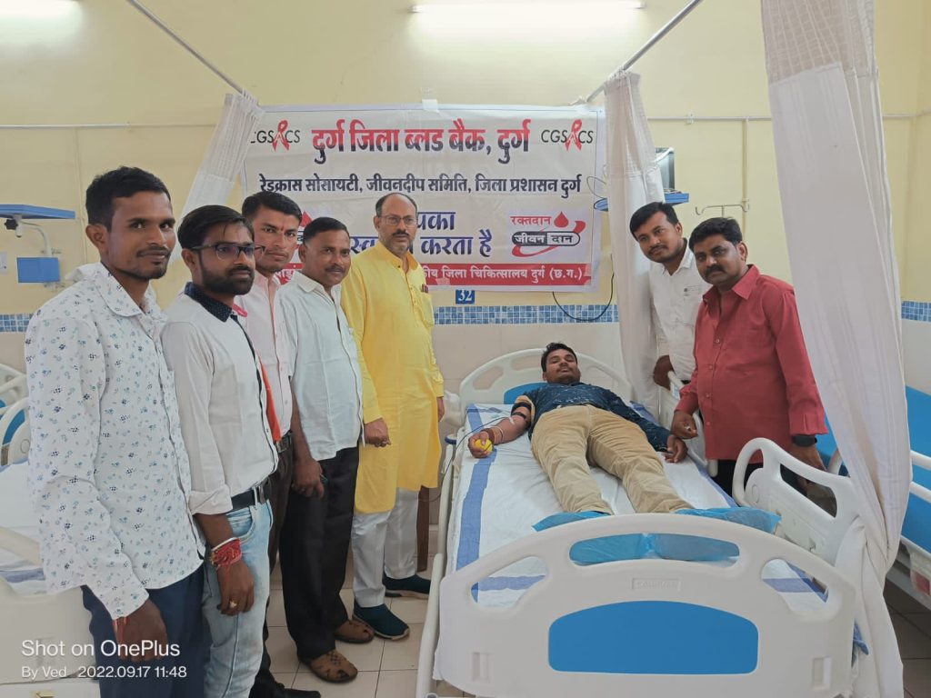 प्रधानमंत्री नरेंद्र मोदी के जन्म दिवस के अवसर पर रक्तदान करके युवाओं और कार्यकर्ताओं ने समाज सेवा के प्रति तत्परता का उत्तम उदाहरण प्रस्तुत किया है। जिला भाजपा अध्यक्ष जितेंद्र वर्मा ने रक्तदान करने वाले युवाओं और कार्यकर्ताओं का तिलक लगाकर एवं श्रीफल अंगवस्त्र भेंट कर अभिनंदन किया। स्वास्थ्य विभाग के समस्त स्टॉफ के प्रति आभार व्यक्त व साधुवाद किया गया। इस अवसर पर प्रमुख रूप से भाजपा जिलाध्यक्ष जितेन्द्र वर्मा,नगर पंचायत नेता प्रतिपक्ष योगेश निक्की भाले,भाजयुमो जिला मंत्री केवल देवांगन,भाजयुमो मध्य पाटन मण्डल अध्यक्ष कुणाल शर्मा,भाजयुमो उत्तर मण्डल अध्यक्ष मोहन साहू,भाजयुमो दक्षिण मण्डल अध्यक्ष नारद साहू,महामंत्री सागर सोनी, दामोदर चक्रधारी, केशव बंछोर, सांसद प्रतिनिधि नितेश तिवारी, वेदप्रकाश नन्हा वर्मा, यशवंत सेन, सरजू मरकाम, मिलन देवांगन, डागेश्वर डॉली वर्मा, राजेन्द्र साहू, रूपेश वर्मा, अनिकेत मिश्रा सहित बड़ी संख्या में भाजपा कार्यकर्ता उपस्थित थे।