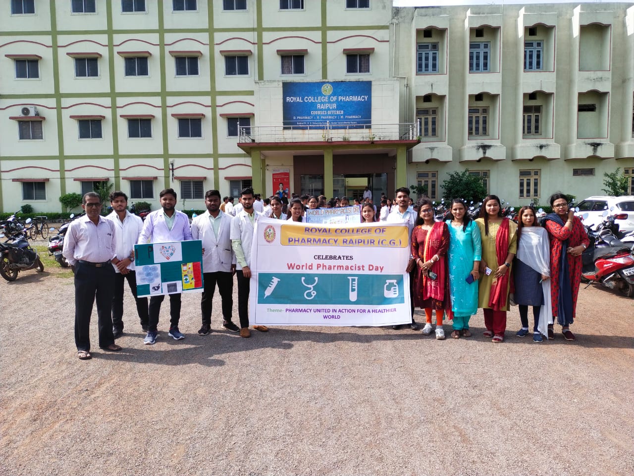 रॉयल कॉलेज ऑफ फार्मेसी, रायपुर में विश्व फार्मासिस्ट दिवस मनाया गया। विश्व स्वास्थ्य संगठन द्वारा इस चौदहवें फार्मासिस्ट दिवस 2022 का विषय “एक स्वस्थ्य विश्व के लिए फार्मेसी समाज एकजुट” रखा गया है। कार्यक्रम के उपलक्ष्य पर इस बार के विषय को ध्यान में रखते हुए, कॉलेज के विद्यार्थियों द्वारा महोबा बाजार क्षेत्र के अंतर्गत कुकुरबेड़ा इलाके में रैली निकाल कर लोगों को स्वास्थ्य के प्रति जागरूक रहने का संदेश दिया गया। इसके साथ ही कॉलेज प्रांगण में पौधारोपण का कार्य प्रिंसिपल डॉ. दीपक कुमार दाश एवं सभी कॉलेज कर्मियों की उपस्थिति में सम्पन्न हुआ