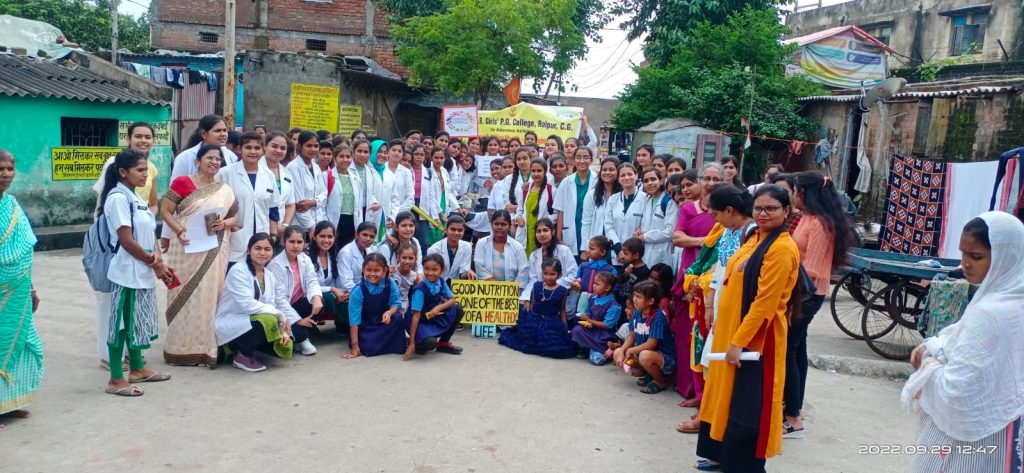 शासकीय दू.ब.महिला स्नातकोत्तर महाविद्यालय रायपुर में पोषण माह के अंतर्गत पोषण ऑन व्हील रैली का आयोजन किया गया। आज को शासकीय दू. ब .महिला स्नातकोत्तर महाविद्यालय रायपुर के गृह विज्ञान विभाग के द्वारा ”पोषण ऑन व्हील” रैली का आयोजन किया गया। इस रैली को झंडा हिलाकर प्रभारी प्राचार्य डॉ. श्रध्दा गिरोलकर, आई.क्यू. ए. सी. प्रभारी डॉ. उषा किरण अग्रवाल, विभागाध्यक्ष डॉ- रश्मि मिंज, वरिष्ठ प्राध्यापक डॉ- नंदा गुरुवारा, डॉ- अनुभा झा, डॉ. शिप्रा बैनर्जी, डॉ. रेखा दीवान, डॉ. मिनी एलेक्स, समस्त अतिथि व्याख्याताओ के द्वारा रवाना किया गया।